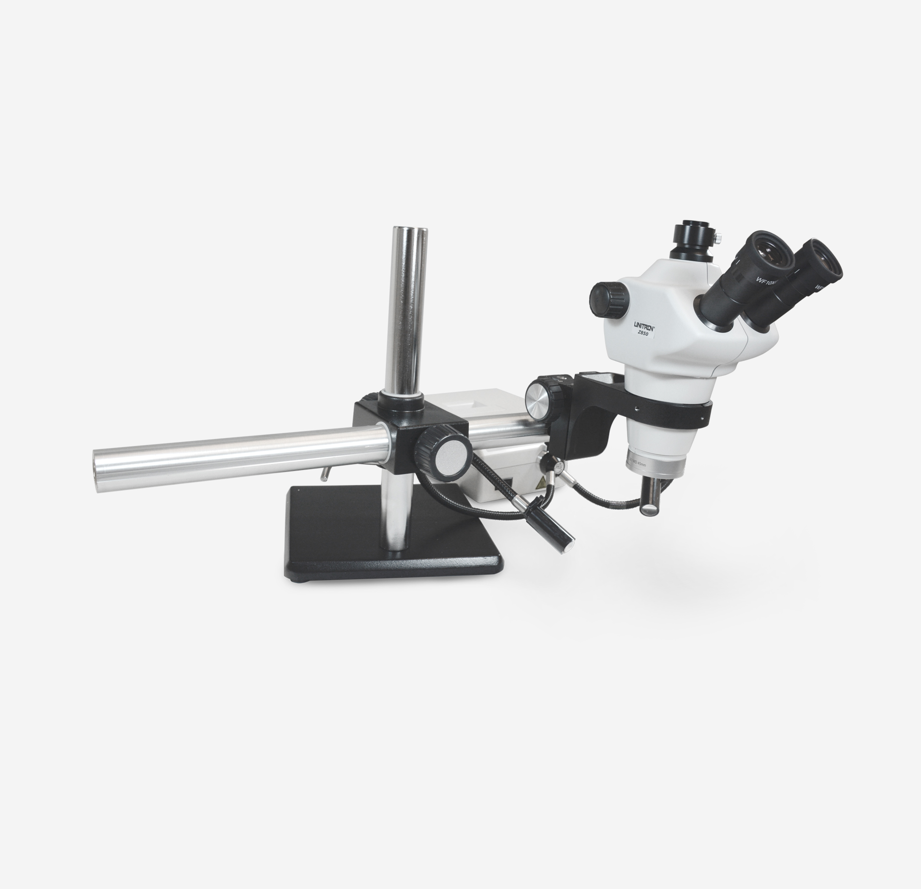 - Universal boom stand with Delrin inserts in focus block for extra smooth movements, horizontal arm with bonder port